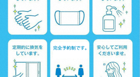 ・こまめに手洗いをしています。 ・マスク着用しています。 ・除菌を徹底しています。 ・定期的に換気をしています。 ・完全予約制です。 ・ご安心してご利用ください。